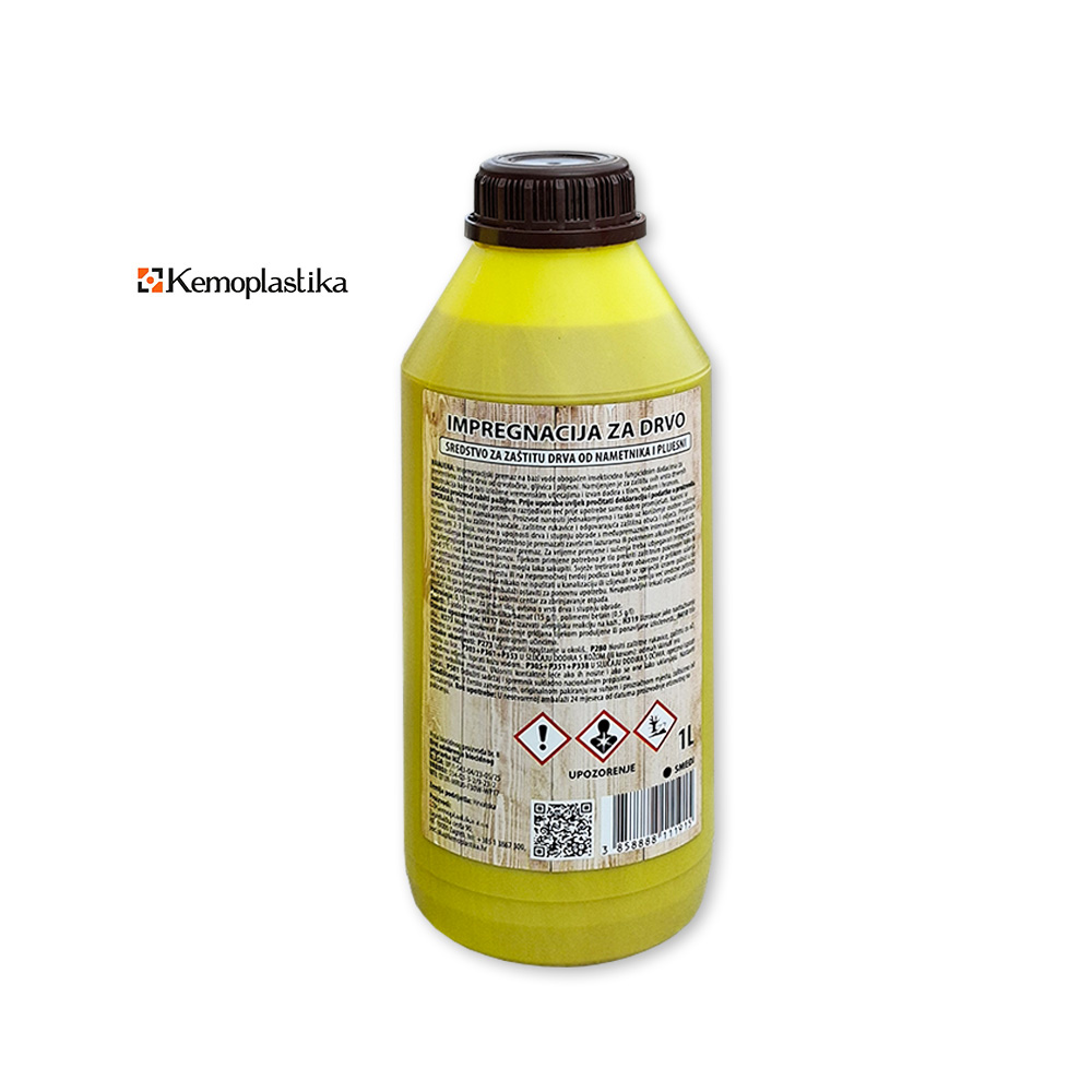 UPORABA: Prije upotrebe potrebno ga je razrijediti vodom (impregnacija : voda = 1:9) te dobro promiješati. Nanosi se kistom, valjkom ili namakanjem. Proizvod nanositi jednakomjerno i tanko uz korištenje osobne zaštitne opreme kao što su zaštitne naočale, zaštitne rukavice i odgovarajuća zaštitna obuća i odjeća. Preporuča se nanijeti 2-3 sloja, ovisno o upojnosti drva i stupnju brade s međupremaznim intervalomod 4-6 sati. Nakon sušenja tretirano drvo potrebno je premazati završnim lazuramaili pokrivnim alkidnim premazima. Ne primjenjivati ga kao samostalan premaz. Za vrijeme primjene i sušenja treba izbjegavati temperature ispod 5 stupnjeva i rad na izravnom suncu. Tijekom primjene potrebno je tlo prekriti zaštitnim pokrovom kako bi se eventualno razlivena tekućina mogla lako sakupiti. Svježe tretirano drvo obavezno je prilikom sušenja skladištiti na aštićenom mjestu ili na nepromočivoj tvrdoj podlozi kako bi se spriječili izravni gubici u tlo ili vodu. Ostatke od proizvoda nikako ne ispuštati kanalizaciju ili izlijevati na zemlju već sredstvo potrošiti do kraja ili ga u originalnoj ambalaži ostaviti za ponovnu upotrebu. Neupotrebljivi tekući otpad i ambalažu predati kao poseban otpad u sabirni centar za zbrinjavanje otpada.