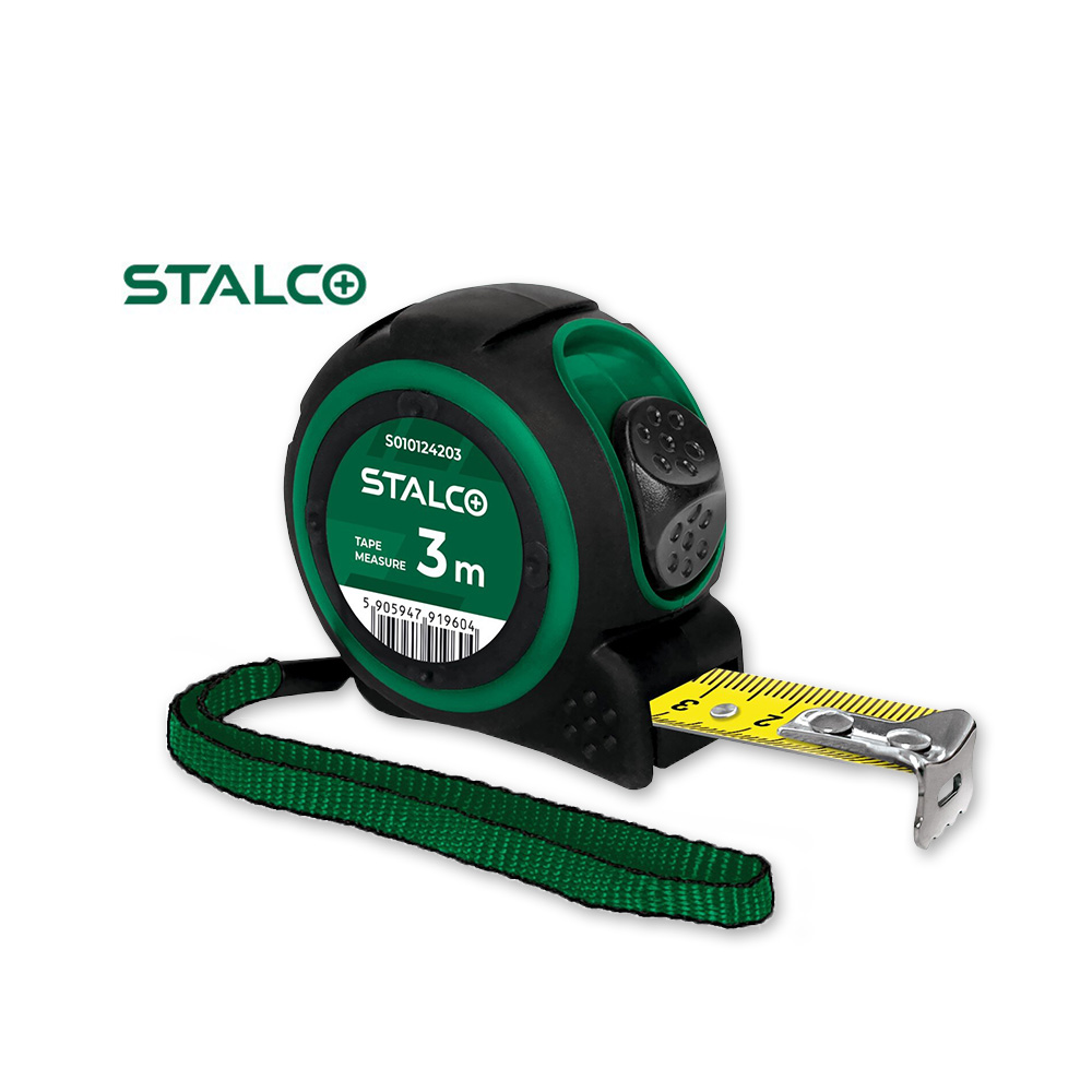 - Ovaj STALCO metar dimenzija 3 m x 16 mm ima neklizajuće ABS kućište s TPS gumom za apsorpciju udaraca pri padu.